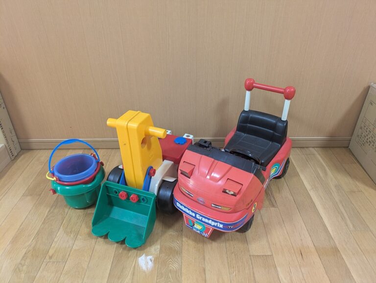 足も少しご不自由にもかかわらず、たくさんの玩具をもって